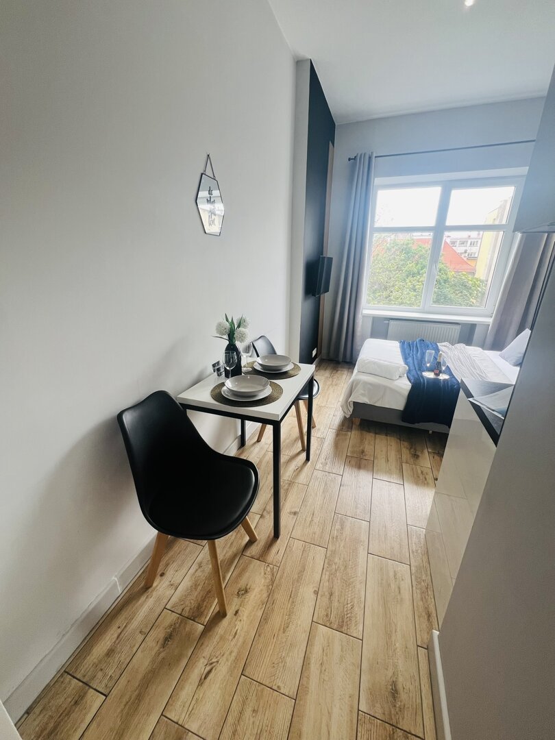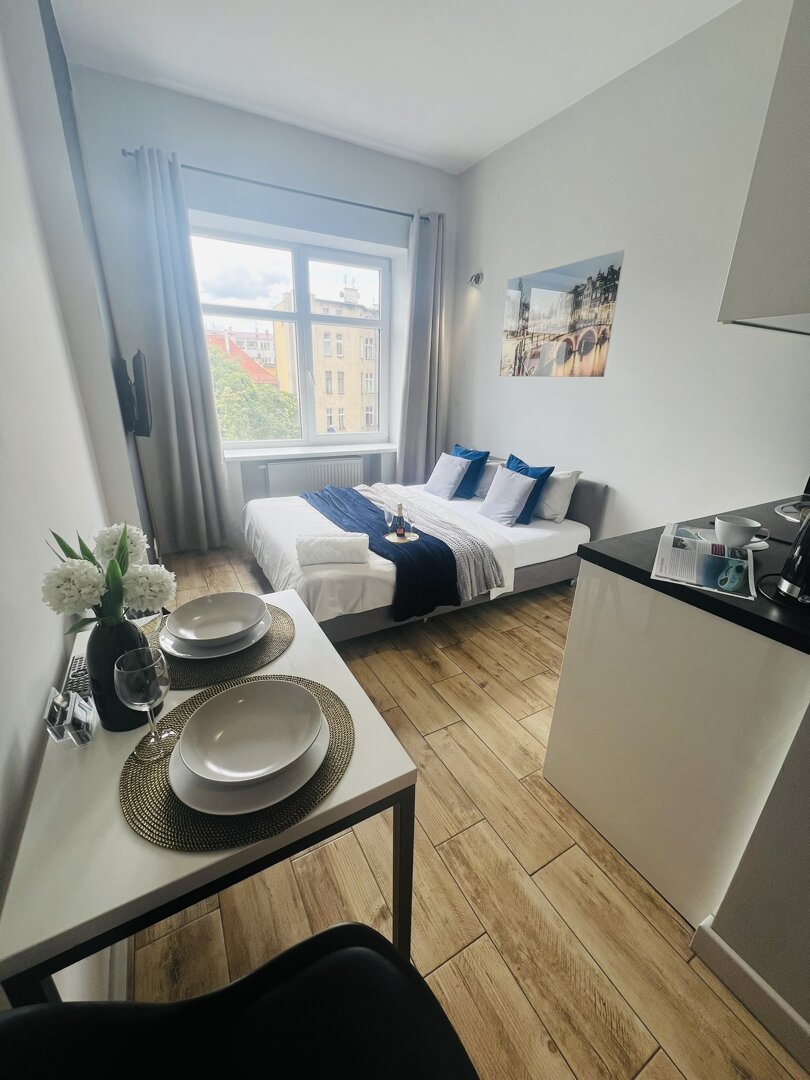 Another apartment for rent that we offer is a comfortable studio apartment of 24m2. Ideal for 2 people. It is located on Ruska Street, which is in the heart of the capital of Lower Silesia. The building where our apartment is located has been recently ren