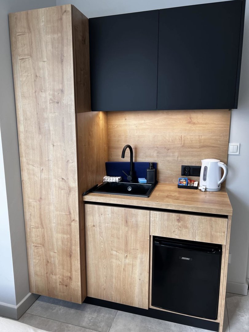 - kitchenette - refrigerator, electric kettle, tableware, cutlery, cleaning products, coffee, tea. sugar.