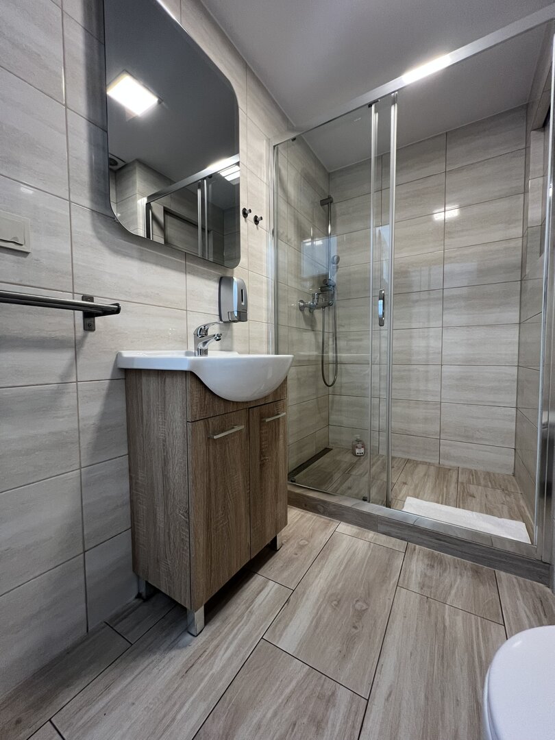 Komfortowy apartament o powierzchni 35m2, ze szczególnym przeznaczeniem dla par, rodzin z dziećmi oraz osób podróżujących w celach służbowych. Oferowany lokal wyposażony jest w podwójne łózko oraz dwuosobową sofę wraz z stolikiem kawowym, wydzieloną częśc